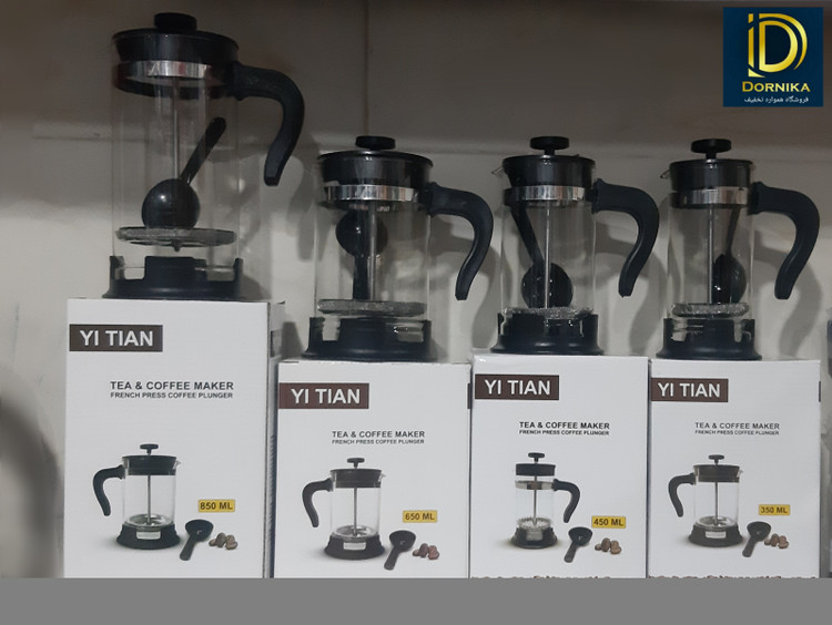 فرنچ پرس ها در سایز ها و مدل های مختلف به فروش میرسند، معمولا دارای مخزن شفاف از جنس پیرکس هستند و در سایزهای 2 نفره تا بسیار بزرگ در بازار موجود هستند.