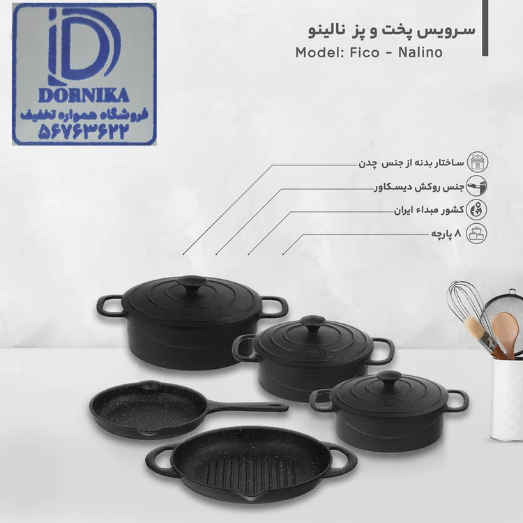 سرویس پخت و پز چدن ۸ پارچه نالینو مدل Fico