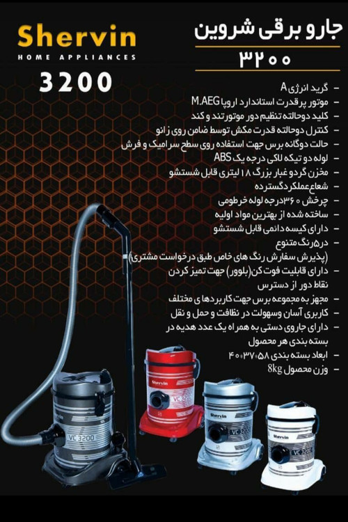 جارو برقی سطلی شروین مدل ۳۲۰۰ وات با ضمانت ۲۴ ماهه شرکتی با بهترین کیفیت و قیمت مناسب با ضمانت فروش به صورت عمده و جزئی با ارسال فوری به تمام نقاط کشور با باربری تیپاکس و پیک یا اسنپ