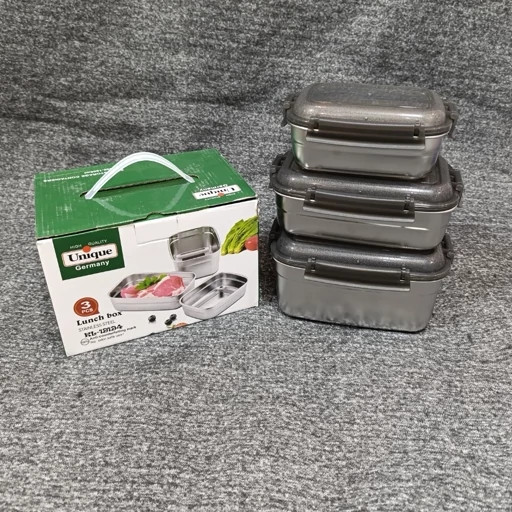 ظرف غذا استیل مستطیلی یونیک 3 سایز یک وسیله کاربردی برای نگهداری و حمل غذا است. از آنجا که متریال ساخته شده برای این ظروف از جنس استیل ضد زنگ بوده و خاصیت اصلی استیل بهداشتی و سالم نگه داشتن مواد غدایی است. به همین خاطر استفاده از لانچ باکس های استیل هم برای محل کار و هم ظرف غذای مدرسه بسیار پرطرفدار می باشد. این محصول دارای 3 قسمت با اندازه های مختلف است. بخش بزرگتر ظرف می تواند حدود 1.5 لیتر غذا را در خود جای دهد و مناسب برای خورش های مایع یا سوپ هاست. بخش متوسط ظرف می تواند حدود 950 میلی لیتر غذا را در خود جای دهد و مناسب برای سالاد ها یا خوراک های خشک است. بخش کوچکتر ظرف می تواند حدود 600 میلی لیتر غذا را در خود جای دهد و مناسب برای میوه ها یا دسر هاست. این ظرف دارای درب های محکم و بسته بندی هوشمند است که جلوی نشت یا ریختن غذا را می گیرد. این ظرف همچنین قابل شستشو در ماشین ظرفشویی است و دارای عایق حرارتی است که غذا را تا چند ساعت گرم نگه می دارد.