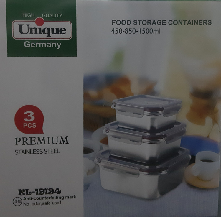 ظرف غذا استیل درب دار یونیک مستطیلی ۳ تایی فروش عمده